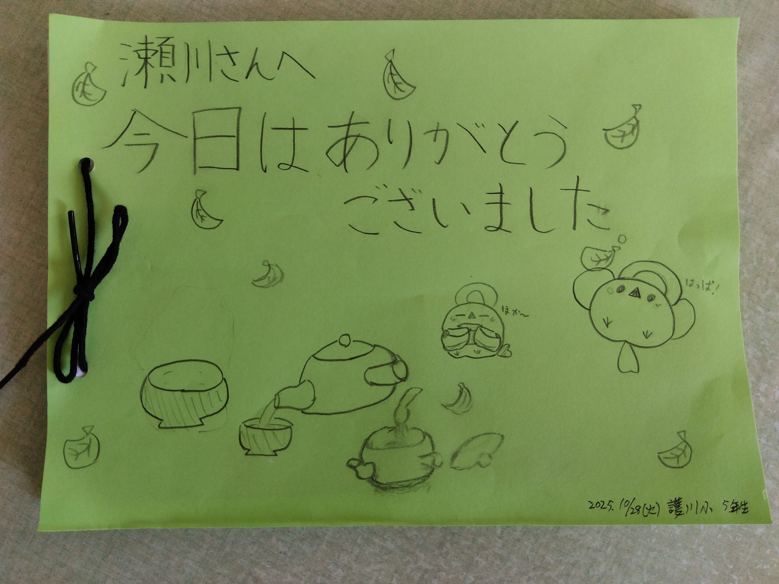 下記写真は、熊本県菊池郡大津町管内の小学校から頂いた物で、昨年開催しました「日本茶講座の感想文御礼状」です。